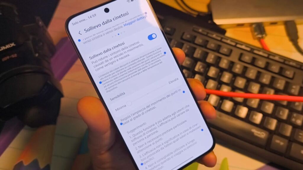 לאחר מכן אנו מוצאים תוכנות טובות רבות אחרות, כמו אחת המוקדשת להקלה על בחילה בנסיעות, היכולת לשנות גודל של סמלים כדי להציג פונקציות משניות של אפליקציות ואז יש מעין אי דינמי.