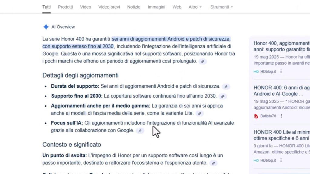 יש הרבה מה לומר כאן, אבל אנסה לא להיות משעמם או ארוך. ה-Honor 400 מציע חוויה גרפית המבוססת על התאמה אישית של ממשק המשתמש של Android 15 ו-MagicOS 9.0 עם תכונות רבות משופרות על ידי בינה מלאכותית. לפני שאספר לכם על כך, אני רוצה לומר לכם מיד שאם אתם חובבי תמיכה בעדכונים, ה-Honor 400 מתגאה ב-6 שנים מלאות של עדכונים מובטחים, לא רק עבור תיקוני אבטחה אלא גם עבור גרסת האנדרואיד עצמה, באופן אידיאלי מאפשרים תמיכה ושחרור של אנדרואיד 21, מהפכה וחדשנות אמיתית בשוק הסמארטפונים של אנדרואיד, שנמשכת בדרך כלל שנתיים לכל היותר.